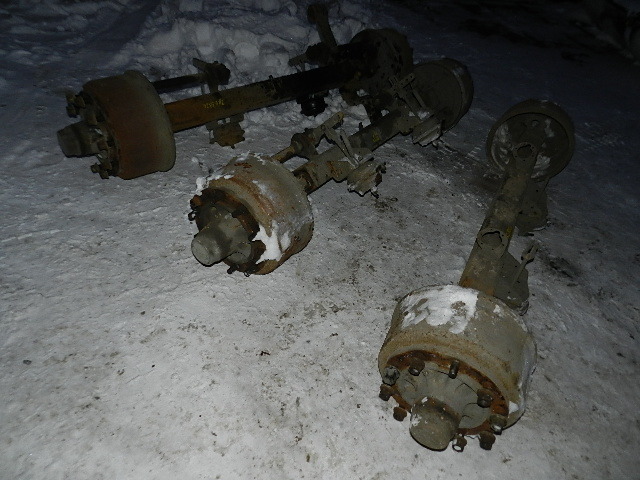 На главную / ДЕТАЛИ Б/У / Прицеп / ось полуприцепа б/у \ В сборе с барабанами, с ступицами, с колодками.